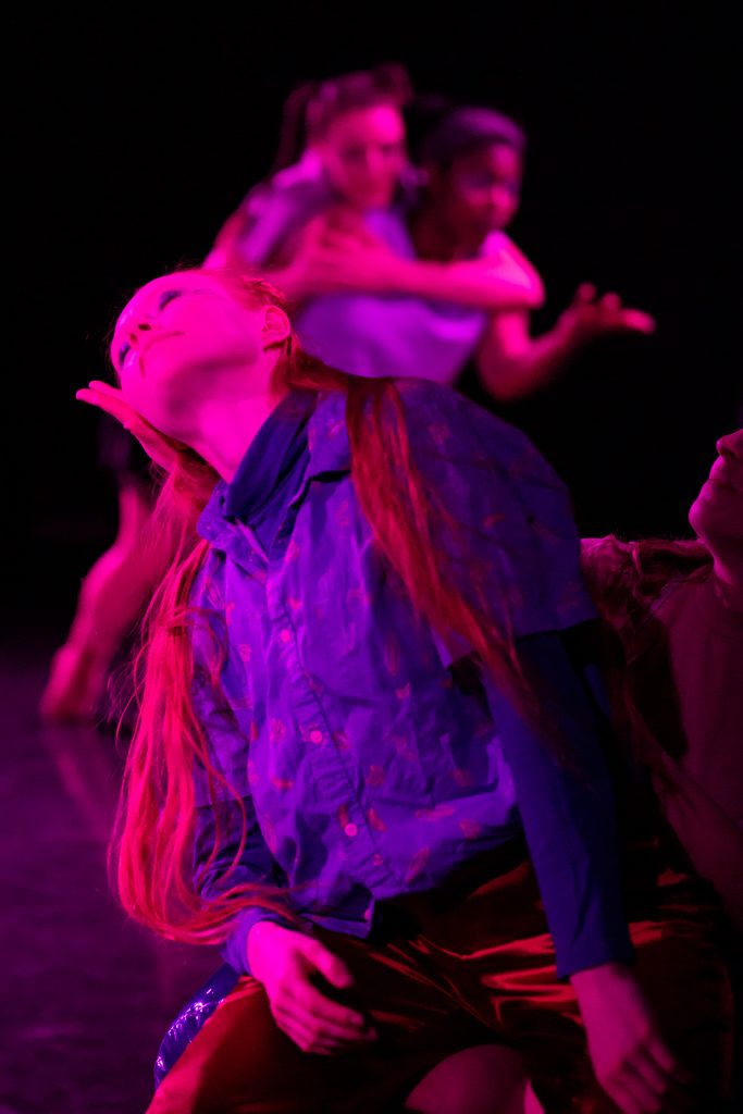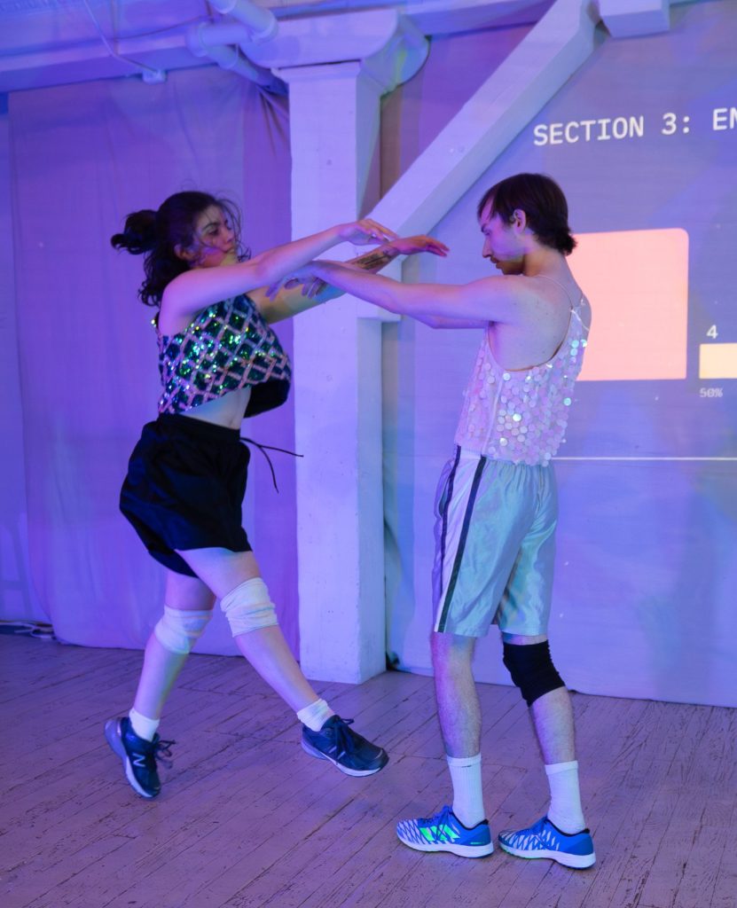 The performers are also given agency in the creation and performance of the work. through open artistic communication between myself and the dancers, prompt-based phrase generation, and the ability to make spontaneous decisions mid-performance, the dancers are empowered to influence the finished product and interact with the audience.